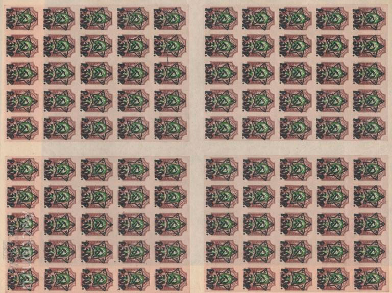 Обычно марки на таких листах идут не сплошным потоком, а для облегчения разделения, уже сразу печатаются секторами, между которыми имеются чистые полоски для разрезания. Каждый отдельный сектор полученный путем разрезания типографского листа, называется марочный лист. К слову, если вам вдруг попадется необычная сцепка содержащая по всем признакам сразу 2 марочный листа, это всё ещё будет типографский лист.